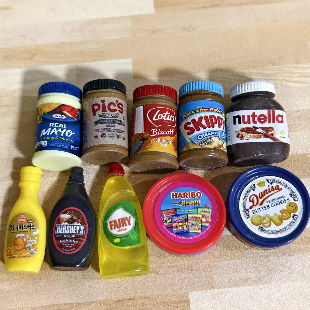 10PCS 1/6 Scale Miniature Dollhouse Cute Sauce Jam/ Cookies /Snacks Daily Necessities Model Toys for OB11 BJD Doll Accessories